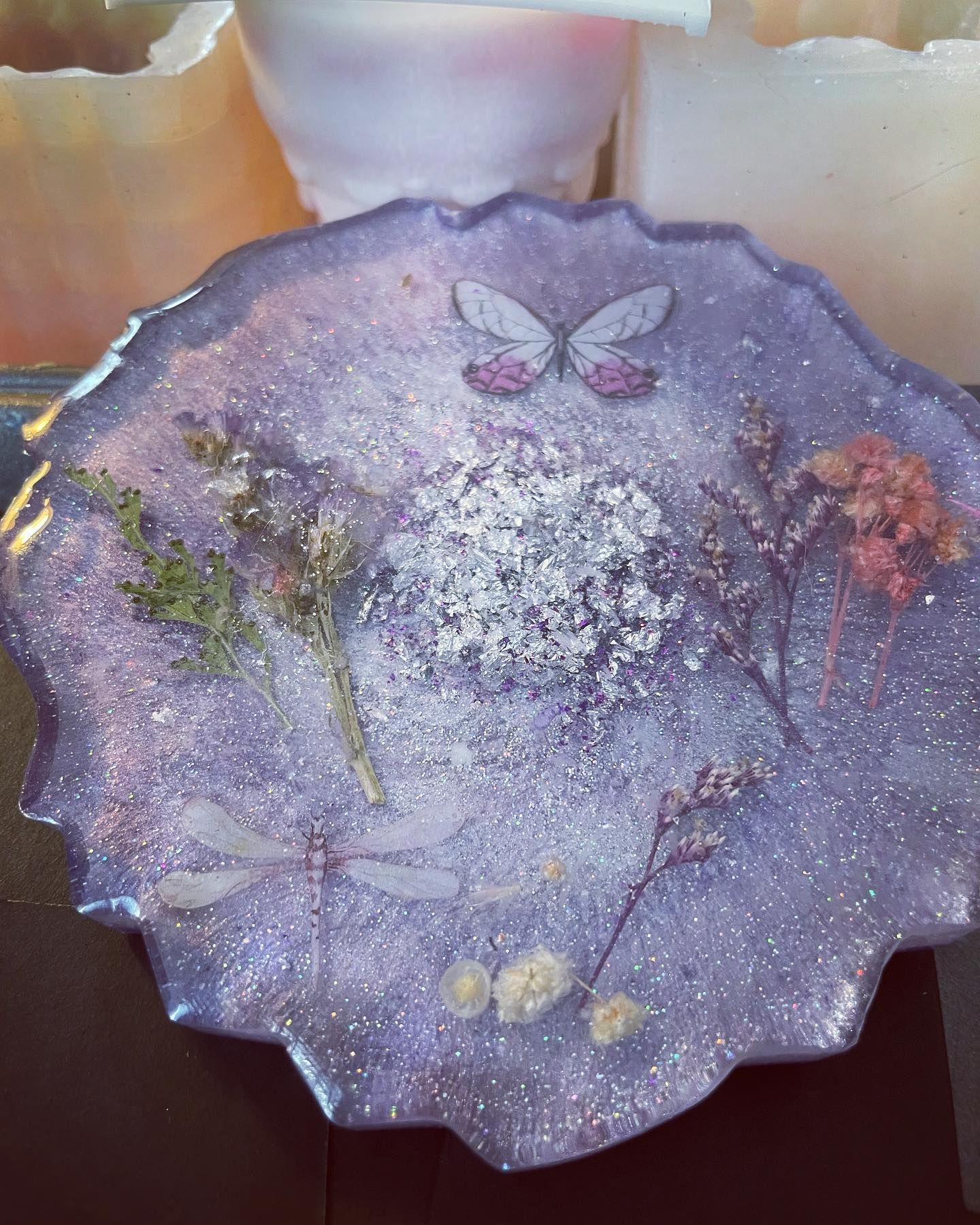 Handmade soaps, adorned with decorative details and the ability to fulfill custom orders with personalized molds, stand as testaments to her artistic prowess. Through her exquisite resin art pieces, Karen captivates hearts with an entirely unique art form, where no two pieces are alike.